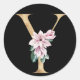 Pegatina Redonda Monograma de magnolia floral en letra Y dorada