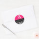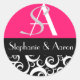 Pegatina Redonda Monograma de matrimonio Damask en negro y rosa cal