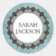 Monograma de nombre floral decorativo estilizado sobre un fondo gris azul con patrón. Elegante y decorativo. Ricos tonos profundos. Esta calcomanía es ideal como etiqueta para libros o para etiquetar tu laptop. Personaliza con tu nombre o iniciales, luego haz clic en personalizar para cambiar el tamaño de tus letras si es necesario.