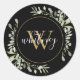 Pegatina Redonda Monograma de oro personalizado Elegante verde negr