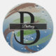 Pegatina Redonda Monograma de pincel verde, marrón y beige