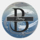 Pegatina Redonda Monograma de pinceladas en negro, blanco y gris