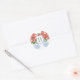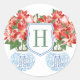 Pegatina Redonda Monograma de poinsettia roja festiva de Navidad