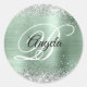Elegante purpurina plateado con chispas contra una falsa imagen gráfica de Relieve metalizado metalizado de color verde de menta moderna y pálida. El lujoso monograma de caligrafía en blanco y negro en el centro puede ser personalizado, puede ser necesario mover para varias de las opciones de la letra. Todos los elementos brillantes y resplandecientes de este moderno diseño ondulado son gráficos digitales. Monogramó pegatinas valiosos por sus invitaciones de cumpleaños.