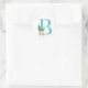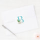 Pegatina Redonda monograma de rosa floral en letra B azul turquesa