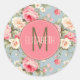 Pegatina Redonda Monograma de Rosas de algodón rosa y azul Shabby C