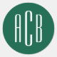 Pegatina Redonda Monograma de tres letras en verde cazador y blanco