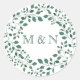 Pegatina Redonda Monograma de Wreath de las hojas verdes