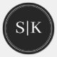 Pegatina Redonda Monograma del Boda combinado blanco y negro editab