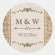Pegatina Redonda Monograma del Boda de encaje de Burlap Rústico