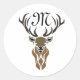 Ilustracion de un imponente estante de 10 puntos sobre un tapete rojo, de estilo tribal. Entre las grandes antemas está la letra "M", m es corta para monograma y puede ser personalizada.