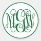 Pegatina Redonda Monograma del guión del vino verde del bosque blan
