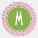 Pegatina Redonda Monograma del modelo de clave griega rosa y verde