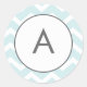 Pegatina Redonda Monograma del patrón Aqua Blue Zig Zag Chevron