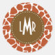 Pegatina Redonda Monograma del patrón de jirafa naranja