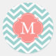 Pegatina Redonda Monograma del patrón de zigzags de fábrica y coral