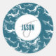 Pegatina Redonda Monograma del patrón del tiburón azul con problema