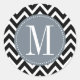 Pegatina Redonda Monograma del Personalizado de Chevron gris y negr