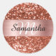 Pegatina Redonda Monograma del Rosa del Purpurina del cobre con bri