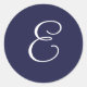 Pegatina Redonda Monograma E, blanco sobre azul marino,