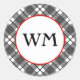 Un pegatina de Gracias único y editable con letras de serif y de guión sobre el fondo de un patrón de plaid inspirado en el blanco y el negro.