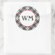 Pegatina Redonda Monograma editable del patrón de trenzado blanco y
