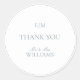 Pegatina Redonda Monograma Elegante Azul Gracias Boda de guiones