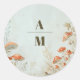 Pegatina Redonda Monograma Elegante Boda Fern Woodland Mushroom