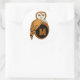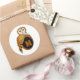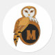 Un ilustracion de una elegante lechuza británica se dibuja desde un lado con la cabeza mirando sobre su hombro. Un huevo monogramado se anida bajo el ala de pájaro. La M es corta para monograma y puede ser personalizada para su inicial.