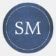 Pegatina Redonda Monograma elegante de la Marina Azul Boda Blanco