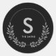 Pegatina Redonda Monograma elegante y personalizado en blanco y neg
