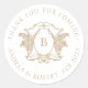 Personalizado Gold y White Classic Luxe Monograma: Gracias por venir Pegatina redondo