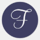 Pegatina Redonda Monograma F, blanco sobre azul marino,