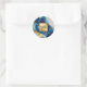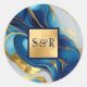 Pegatina Redonda Monograma Faux Gold, Blue and White Marble Boda