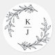 Pegatina Redonda Monograma Favor inicial de casamiento en hojas bot