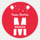 Pegatina Redonda Monograma Feliz Cumpleaños Cualquier Edad Rojo Y B