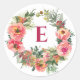 Pegatina Redonda Monograma Festividad Rosa Wreath Botánica