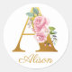 Pegatina Redonda Monograma floral Nombre personalizado Botánico ini