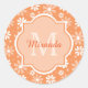 Pegatina Redonda Monograma Girly Naranja lindo flores de margarita