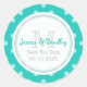 Bonito azul verde polka punto Save The Date Pegatinas personalizados con el nombre de la pareja y el monograma. Usted no se limita a pegatinas de boda, usted es bienvenido a cambiar las palabras y añadir las suyas. Crea una etiqueta para tus productos enlatados, etiquetas de regalo o cualquier producto que elijas.