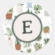 Pegatina Redonda Monograma Hogares Plantas de hojas botánicas Lover