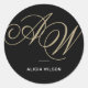Pegatina Redonda Monograma inicial de nombre completo personalizado