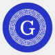 Pegatina Redonda Monograma inicial del marco de la llave de griega