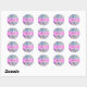 Nombre de monograma iridiscente holográfico del arcoiris grisáceo y pegatina redonda clásica inicial. Su nombre personalizado y su monograma están escritos en un guión elegante con letras a mano con un fondo rosado. ¡Un regalo perfecto de cumpleaños o Navidades!