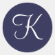Pegatina Redonda Monograma K, blanco sobre azul marino,