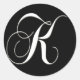 Pegatina Redonda Monograma K - blanco y negro elegantes
