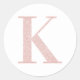 Pegatina Redonda Monograma K Purpurina de oro Girly Pale Rosa