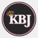 Nuestros Pegatinas Ketanji Brown Jackson KBJ Monograma Classic Round son una forma divertida de celebrar a nuestro nuevo Tribunal Supremo. El diseño incluye texto blanco unido con fondo negro con acento rosa y corona dorada. Disponible en diversos tamaños pegajosos. Precio por la hoja con descuentos por volumen disponibles!