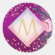Pegatina Redonda Monograma Magenta Rosegold Purpurina metálico rosa