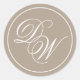 Pegatina Redonda Monograma Marrón Grisáceo Elegante Caligrafía Inic